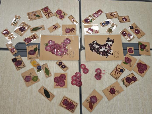 定格四季诗意,收藏自然馈赠——制作植物书签。达尔文社成员在三位教师的指导下,通过采集校园内自然掉落的枝叶、花瓣,结合干燥、塑封等科学处理方法,将春日桃花、西府海棠等植物制成精美的永久保存书签。让阅读与自然知识相伴而行。在带领学生制作书签的过程中,也会向学生讲解所采摘的植物属于什么科,什么属种,有什么习性,在知识普及中让学生更加深入到自然中去。一枚小小的植物书签,承载的不仅是花叶的形态,更是一段探索自然的旅程。达尔文社的成员们在科学与艺术的交汇处,找到了与自然对话的新方式——用双手留存春光,用心灵阅读生命。