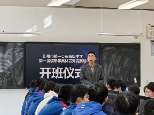 当代码的逻辑碰撞青春的活力,当兴趣的种子遇见悉心的浇灌,一场关于成长与热爱的盛会如约而至。2025年11月14日,郑州市第一〇三高级中学信息学奥林匹克竞赛(以下简称“信奥赛”)培训班见面会顺利召开,学校副校长王森主持,学校领导与全体参训学子齐聚一堂,共同开启信息世界的探索之旅。
