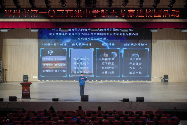 当“星辰大海”照进高中校园,当航天英雄与挚热青春对话,一场关于坚毅、勇敢、梦想、信念与家国担当的精神洗礼于近日在郑州市第一〇三高级中学温情上演。在郑州市教学资源保障中心指导下,该校成功举办“郑州市航天科普卫星工程系列活动——航天专家进校园”主题讲座。本次主题讲座由中国首批航天员、曾任中国载人航天工程航天员系统副总师的赵传东大校主讲,郑州市教学资源保障中心主任张冬磊,郑州市第一〇三高级中学党支部书记、校长孙国岩携学校千余名师生在此共赴“追星之约”,在航天知识滋养与精神感召中,立下“逐梦星辰,强国有我”的铮铮誓言。