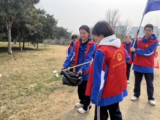 活动伊始,校团委老师向学生们强调了活动意义与安全规范,叮嘱大家在保障自身安全的前提下,细致清理各类生活垃圾,同时做好垃圾分类投放。随后,志愿者们身着统一的校服与红色志愿马甲,手持垃圾夹、垃圾袋等工具,迅速分组投入到清洁行动中。大家沿着河岸步道与草坪分区作业,有的弯腰捡拾地面纸屑、烟头等细碎杂物,有的用长柄垃圾夹夹取藏在灌木丛中的塑料瓶、包装袋,还有的主动撑开垃圾袋,配合队友高效收纳收集到的废弃物。