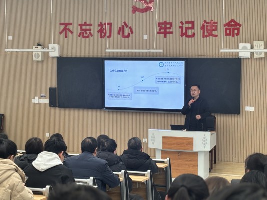 签约揭牌仪式结束后,郑州市第八人民医院医务科科长袁海,在学校合班教室为全校教职工带来一场主题为《破解压力困境 重塑心理韧性》的专题讲座。讲座紧密贴合高中教学工作实际与高中生心理发展规律,深度剖析高中师生日常面临的压力来源,用通俗易懂的语言、贴合实际的案例,讲解科学有效的压力调适方法、心理韧性塑造技巧,同时指导教师掌握基础的学生心理问题识别与初步疏导方法,帮助教师更好地关注学生心理状态、呵护自身心理健康,切实提升全校教职工的心理健康教育实操能力。